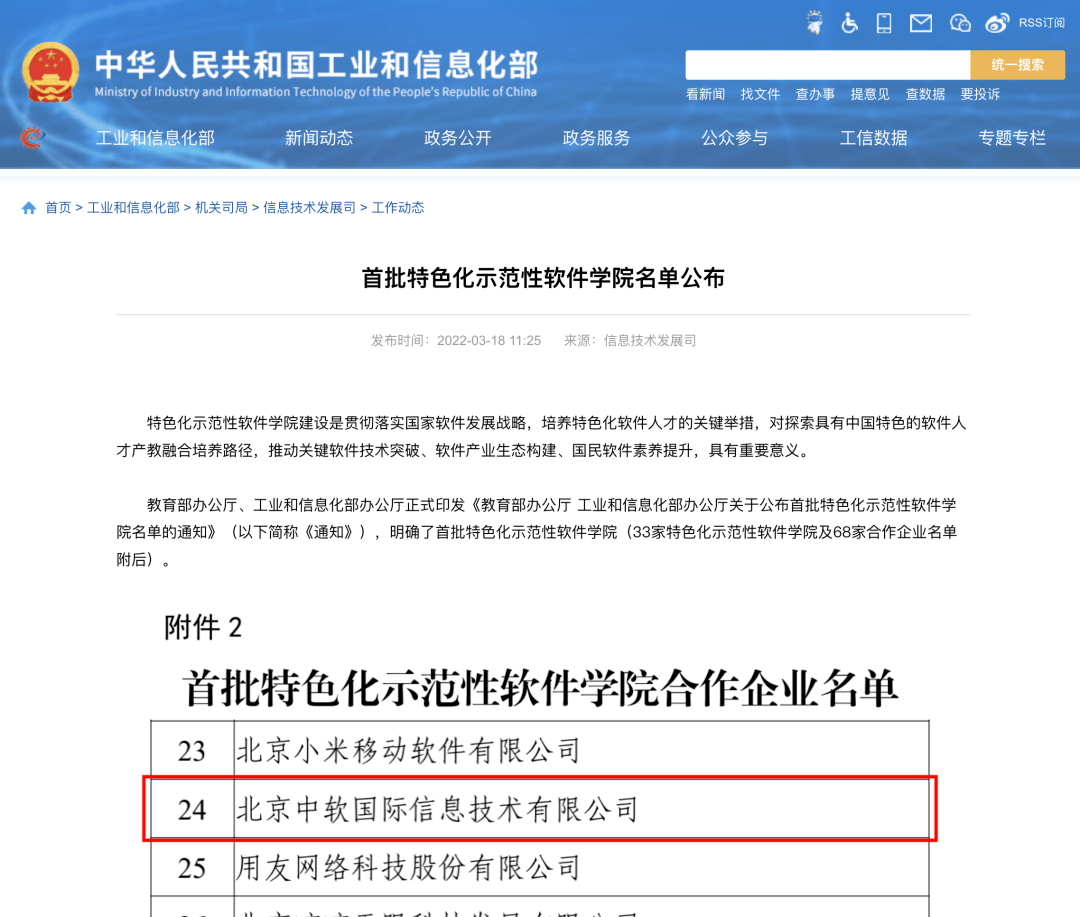 此次入选首批特色化示范性软件学院合作企业名单,再次证明了中软国际在软件人才培养方面的实力。未来,中软国际将继续积极响应国家建设人才强国战略目标,深度参与学院建设,与高校共同探索具有中国特色的软件人才产教融合培养路径,聚焦国家战略需求,重点瞄准科技前沿和“卡脖子”关键核心技术的创新和突破,打造国家软件创新发展的战略力量。