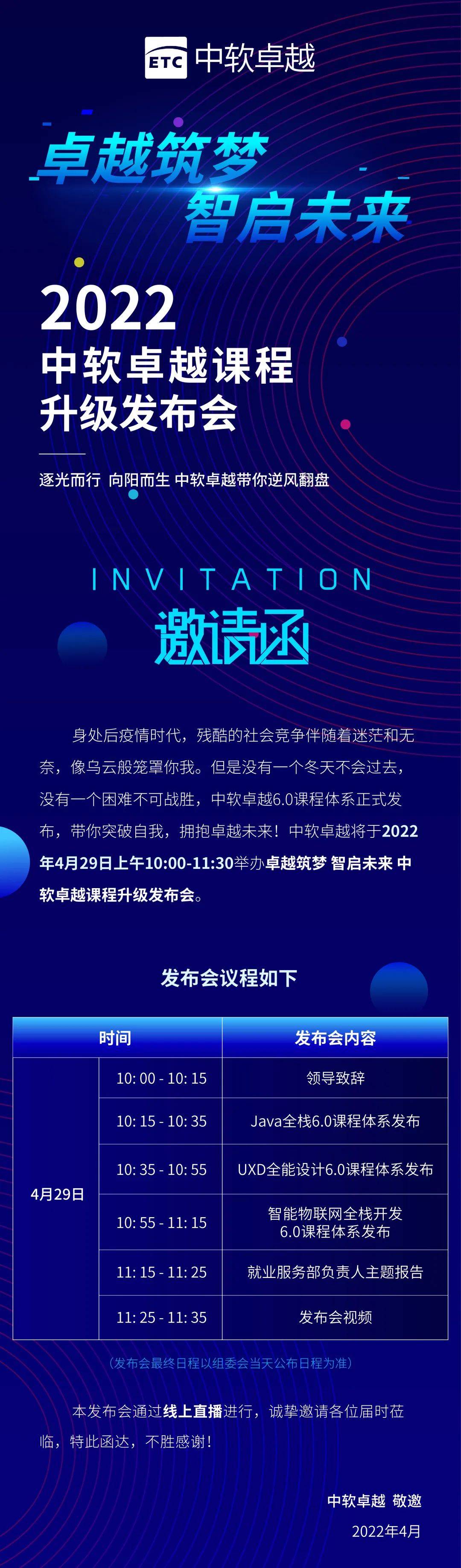 在发布会现场,中软卓越将针对社会广大学子,正式发布6.0课程体系。卓越筑梦、智启未来,中软卓越优化数字化人才培养方式,助力莘莘学子成为适应数字化时代发展的应用型技术人才。逐光而行、向阳而生,中软卓越带你逆风翻盘!