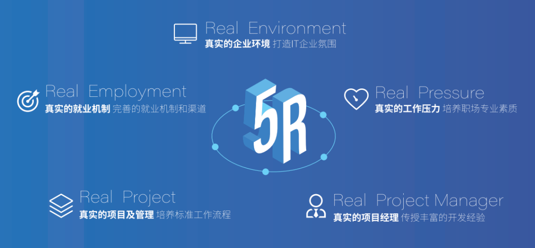 李佳历:从企业及行业实际用人需求为出发点,中软卓越重金研发了“5R(5Real)”人才培养体系(5R即:真实的企业环境、真实的项目及管理、真实的项目经理、真实的工作压力、真实的就业机制),精专理论知识、强调实战操作、还原生产场景、聚焦综合能力培养。“5R”人才培养体系是我们在业界首创的专业技术人才培养理念,同时也是我们多年来专业技术人才培养经验的结晶及核心指导原则。